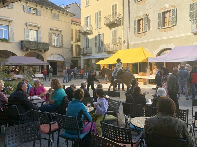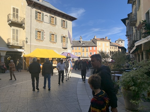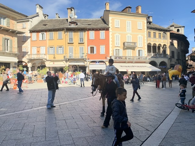 DOMODOSSOLA- 27-10-2019- Inondata dal sole e con tanto pubblico la 22^ edizione della Festa d'Autunno che Oscella Felix ha organizzato in piazza Mercato domenica. In tanti si sono messi diligentemente in coda per la distribuzione di polenta con spezzatino, gorgonzola, salamini. Nel pomeriggio la merenda con gli stinchett vigezzini, la castagnata e il risotto con la toma della Val Formazza. Tanti i bambini che hanno effettuato le passeggiate a cavallo nel centro domese, e i presenti sono stati allietati dalla musica della Bandella vigezzina. Si chiude alle ore 20 la cena medievale (prenotazioni al 34055865).