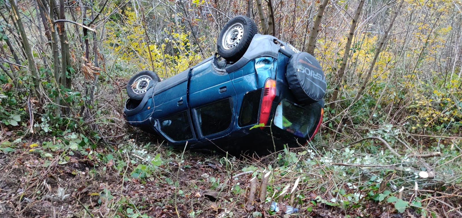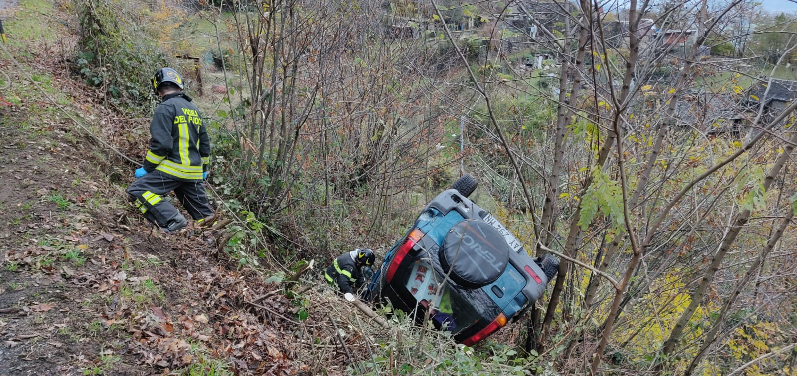 una piccola jeep, che si è cappottata, fermandosi fortunatamente prima del precipizio grazie ad alcune piante. E' successo intorno alle ore 16 sulla strada che porta a Sogno, poco sopra Villadossola. Sul posto sono giunti i Vigili del Fuoco di Domodossola, che hanno effettuato il delicato soccorso, prima si è dovuto recuperare, con tutte le difficoltà del caso, il cane, un pastore tedesco, poi la donna che era alla guida dell'auto, subito accudita dai sanitari. Non si conoscono le sue condizioni di salute, ma era cosciente al momento del salvataggio.