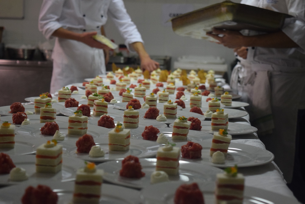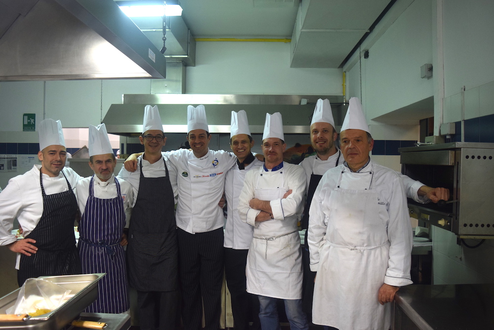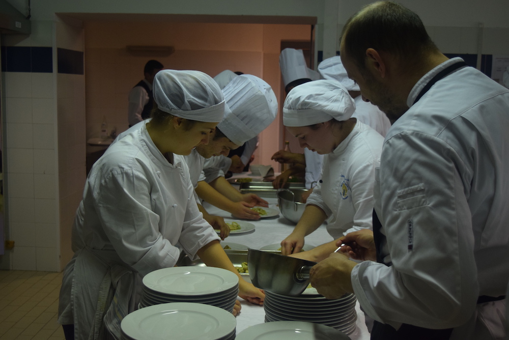 In cucina oltre agli chef della scuola Giandomenico Iorio e Alberto Terreni, tanti altri ex allievi e professori: Danilo Bortolin, Riberto Jossi, Ivano Pollini, René Ietti, Stefano Garanzini e Giorgio Bartolucci. In sala il servizio è stato curato dai maître della scuola Mario Summa e Damiano Oberoffer con i loro studenti. Il ricavato della serata verrà utilizzato per l’acquisto di materiale didattico per i laboratori pratici dell'Istituto domese.