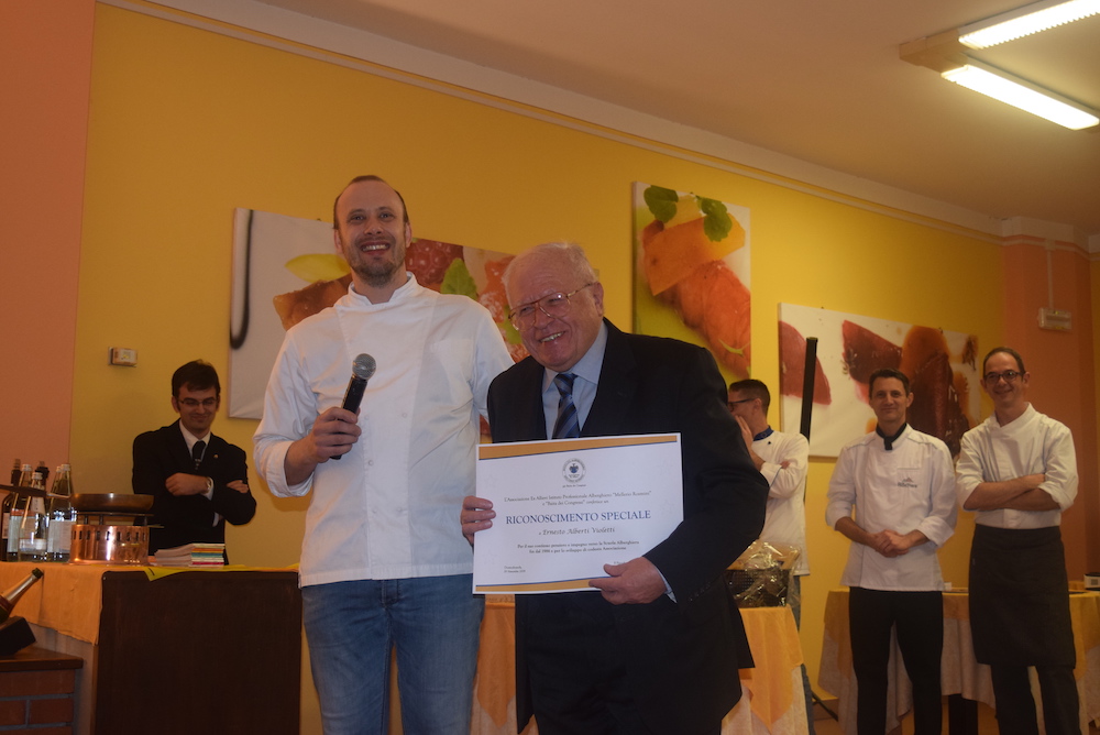 Come da consuetudine sono stati poi consegnati importanti premi e riconoscimenti: riconoscimento alla carriera e al costante impegno a Ernesto Alberti Violet, storico maître dell’Istituto fin dal primo anno scolastico a Domodossola nel 1986 e uno dei fondatori dell’Associazione; Riconoscimento agli studenti presenti in rappresentanza del primo anno scolastico della scuola a Domodossola nel 1986; un premio di studio in denaro agli alunni che nel precedente anno scolastico hanno ottenuto i migliori punteggi all’esame di stato (Mario Selva e Luca Deini, entrambi con voto 93/100). Premiate le migliori esperienze lavorative estive fra gli attuali studenti (Lorenzo Forni, Aurora Marabese, Luca Zonca, Gioele Gallacci, Simone Pozzi, Christian Dellamora, Enrico Colombini). E infine, il premio alla professionalità all'ex allievo Giorgio Bartolucci, per la Stella Michelin ottenuta recentemente.
