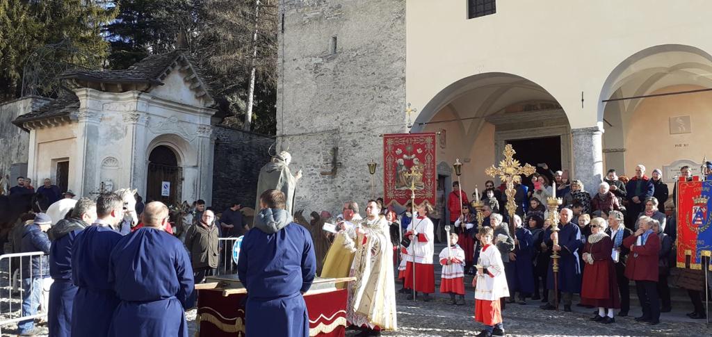 festa di Sant'Antonio Abate é stata celebrata questa mattina a Toceno, con la messa, la benedizione degli animali e del pane. Patrono del borgo vigezzino, Sant'Antonio è stato festeggiato con una cerimonia come sempre molto partecipata che ha visto quest'anno anche la discesa in piazza, dei bovini per ricevere la benedizione da parte degli efficienti. "Gli animali devono essere rispettati, trattati bene, ben custoditi, tante volte non abbiamo riguardo per i nostri animali", ha sottolineato don Paolo Montagnini.