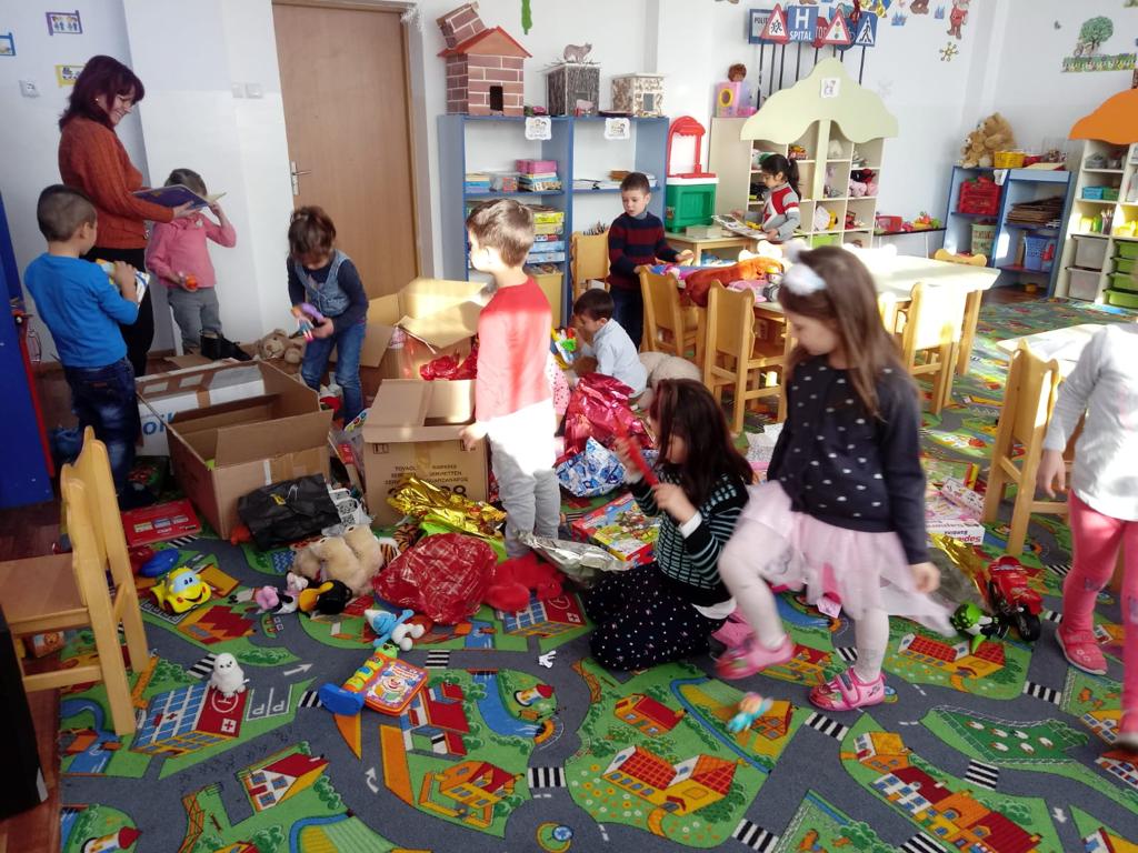 Ai nostri bambini facciamo regali, diamo la “paghetta” e siamo sempre premurosi nei loro confronti. Così è stato pensato di invitarli attraverso i rispettivi genitori a donare qualcosa, anche a privarsi di un piccolo oggetto, un gioco per i bambini di un asilo rumeno che ne hanno veramente bisogno! La scuola dell’infanzia in Romania si trova a Gradinita Blagesti nel distretto di Bacau paese di origine della signora Ionela che ha deciso di vivere a Formazza sposando un formazzino e che ha sensibilizzato la Parrocchia. Sono stati raccolti 6 cartoni pieni di giocattoli nuovi e altri in perfetto ordine, praticamente come nuovi e inviati attraverso la signora Ionela all’asilo in Romania che ha inviato alcune foto.