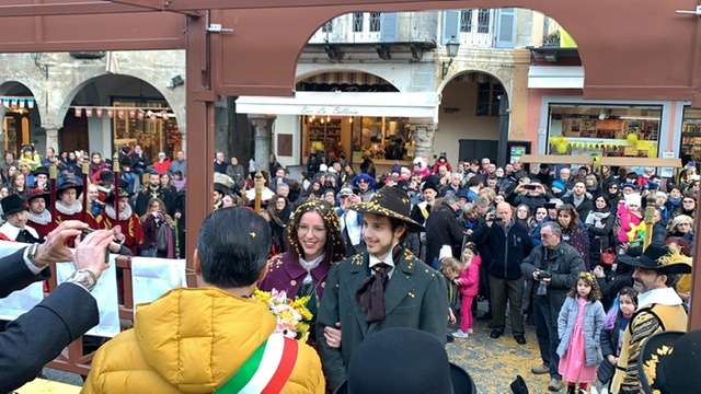 Da lunedì le maschere gireranno in tutte le scuole elementari cittadine, donando ai bambini il libro con i fumetti della loro storia d’amore. Tra gli appuntamenti in programma da segnalare giovedì grasso al teatro Cappuccina lo spettacolo “C'è Pulenta per te”, presentato da Luca Costale e Andrea Lavalle, con la partecipazione di Harmony Dance, a ingresso gratuito. Sabato 22 febbraio alle 11 arriverà in piazza Matteotti il gruppo svizzero Rafjjfager Brig, ed alle 12 sarà presentata in piazza Chiossi la Tisana del Togn e della Cia. Alle 14e 30 al Trocadero inizierà il ballo dei bambini in costume (costo ingresso 4 euro).