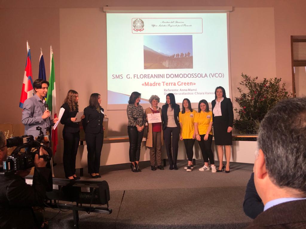 per gli alunni della classe III E della scuola media Floreanini di Domodossola. I ragazzi hanno ricevuto a Biella dal ministro dell'Istruzione, Lucia Azzolina, il premio per il progetto "Madre Terra", svolto nell'ambito del concorso "La scuola coinvolge il territorio, premio Zanotti". A guidarli le professoresse Mansi e Angelino, ideatrici con la preside Varesi, del progetto "Green". Al concorso sono stati presentati 31 progetti provenienti da 7 province della regione, la scuola media Floreanini si è classificata al terzo posto.