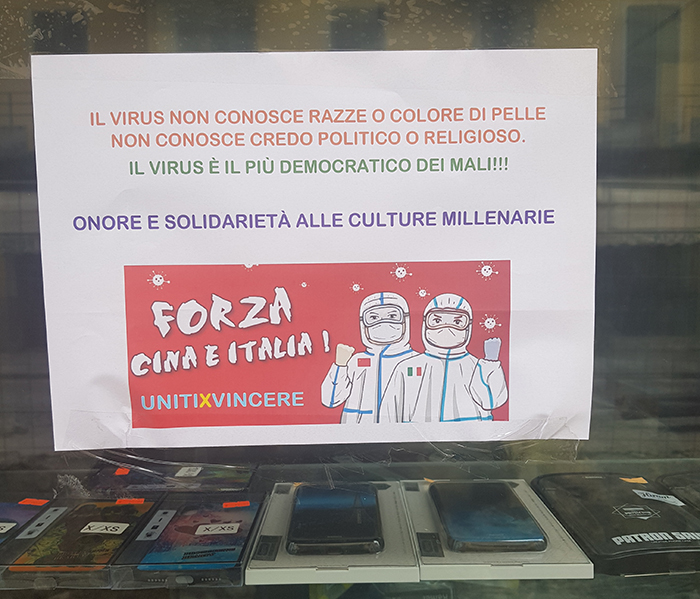 o colore di pelle, non conosce credo politico o religioso. Il virus è il più democratico dei mali. Onore e solidarietà alle culture millenarie, forza Cina e Italia. Uniti per vincere". Questo il manifestino appeso sulle vetrine delle attività commerciali gestite da cinesi a Domodossola, tutte chiuse per due settimane per contribuire a eliminare la circolazione del contagio da Covid-19. Un bell'esempio, un bel messaggio lanciato da una comunità che si è sempre distinta per la discrezione, la laboriosità ed il rispetto delle regole.
