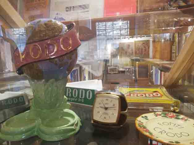 Ricchissima è la collezione degli articoli pubblicitari “Crodo” (l’introvabile mappamondo è una chicca imperdibile) e poi c’è davvero tutto un mondo che aspetta il visitatore e tutto è semplicemente lì, pronto per regalarsi agli occhi, ai cuori e alle menti… In questa casa dell’arte il tempo diventa liquido e perde di sostanza, le ore scorrono velocissime e fra quelle mura si prova quasi un senso di smarrimento.