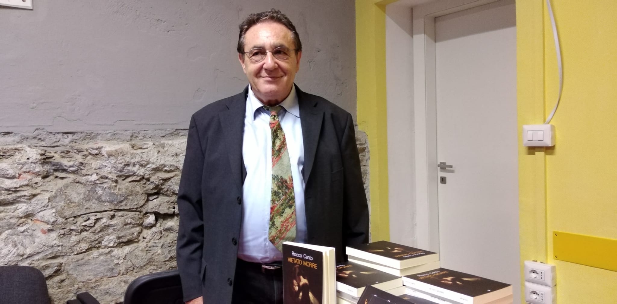 Spazio Contemporaneo della Soms di Domodossola, Rocco Cento ha presentato il suo nuovo libro " Vietato morire " , un romanzo che fa parte di una trilogia, che sarà completata con due successive pubblicazioni. Giuseppe Possa, Giorgio Quaglia del blog " pqlascintilla" e Salvatore Iacopino hanno conversato con l'autore, davanti a un pubblico attento e interessato. Era presente anche Gilberto Salvi, editore Mnamon, la casa editrice milanese che ha pubblicato il libro. Rocco Cento, domese, classe 1954, negli anni ottanta è stato assessore alla cultura del comune di Domodossola e fra il 1986 e il 2002 ha dato alle stampe due libri di prosa e tre raccolte di poesie. In questo nuovo volume che ha un'ambientazione ossolana e domese, l'autore tratta il tema della quotidianità della follia, che è in tutti noi, ma anche di religione, spiritualismo e spiritismo. " Si tratta di una trilogia, è una storia che dura da una trentina d'anni, l'ho cominciata quando è nata mia figlia e poi l'ho continuata, sono complessivamente oltre 1300 pagine . Divisa in tre parti questa è la prima, poi la prossima uscirà probabilmente a novembre con il titolo "Affinità criminali " e l'ultimo in primavera dovrebbe uscire con il titolo " Il bianco e il nero" . La follia è presente nella vita di ognuno di noi, purtroppo è un compagno con cui bisogna cercare di convivere, contenendone gli aspetti istintivi e istintuali" ha raccontato l'autore . Per quanto riguarda i suoi progetti futuri: "Sono prossimo alla pensione quindi mi piacerebbe tornare a occuparmi della mia città, non in termini politici o amministrativi ma facendo attività nell'ambito delle associazioni di volontariato" conclude Cento.