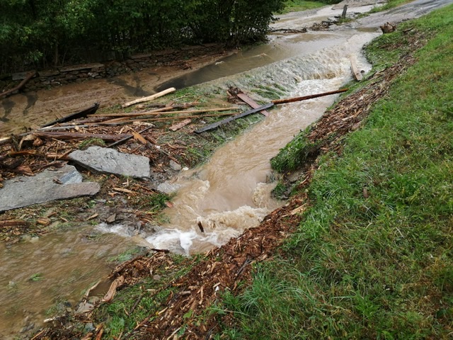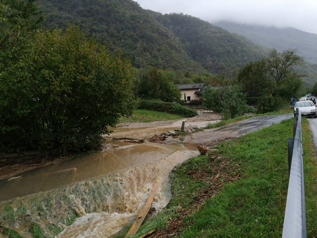 le forti piogge di queste ore hanno causato tre frane e allegamenti, uno allo stabilimento Hydrochem. Frane anche a Megolo ed in frazione Loro.