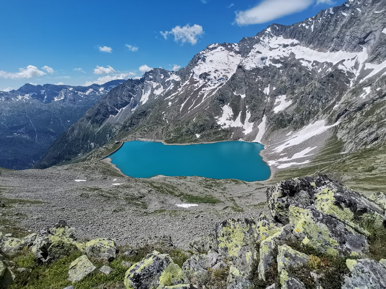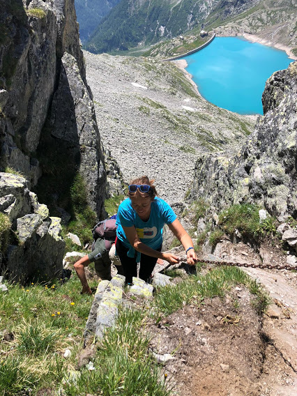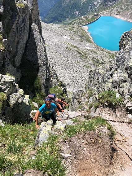 Nonostante un discreto recupero fisico, mi fermo ad attendere gli amici in zona sicura a quota 2550. Anche perché di qui ero già passato in gioventù, chiudendo il giro a Cheggio. L’età insegna anche a saper rinunciare e a distribuire equamente le scarse forze a disposizione. Gli altri proseguono per il passo, 2697, percorrendo con assoluta tranquillità, anche un’eroica esordiente, l’ultimo ripidissimo canale attrezzato. In contemplazione della splendida conca di Camposecco e dei suoi monti aspetto il gruppo e discendiamo al lago. Dopo una corposa pausa pranzo ripercorriamo in una lunga e faticosa discesa l’itinerario di salita. Chi in salita ha dato tutto paga lo sforzo in una soffertissima discesa, ma arriviamo comunque alle auto in tre ore. I medici del gruppo prescrivono immediatamente a chi ha sofferto di più una terapia rigenerante onde evitare il blocco totale degli arti inferiori nei prossimi giorni.