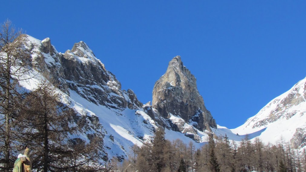 Partiamo nonostante previsioni incerte e il nostro coraggio sarà premiato da una bella giornata. C’è, comunque, troppa neve, anche recente, per pensare a itinerari presuntuosi. Anche il vento dei giorni scorsi ha contribuito a creare condizioni pericolose del manto nevoso quasi ovunque. Non volendo dare lavoro in più al Soccorso Alpino, già super impegnato di questi tempi, optiamo per una gita sicura, in ambiente bellissimo e con meta estremamente ospitale. Il Rifugio Pietro Crosta, all’alpe Solcio, ai piedi del maestoso gruppo Diei – Cistella, è stato rigenerato negli ultimi anni da Marina ed Enrico, due professionisti della montagna. Con le loro continue e belle iniziative, con la loro sempre squisita ospitalità e con il loro lavoro di preparazione e controllo dei vari itinerari d’accesso a Solcio hanno trasformato il rifugio in una delle mete più ambite, con qualsiasi tempo, per qualsiasi capacità ed in qualsiasi stagione. E’ sufficiente un minimo allenamento ed un po’ di dimestichezza con la neve, almeno in gennaio. Oggi cerchiamo di soddisfare tutti i componenti del nostro gruppo, cani compresi, ed organizziamo un’escursione mista per ciaspolatori, sci-alpinisti e border collie. Partiamo da Maulone, quota 950, lungo la strada Varzo – San Domenico. Troviamo anche il comodo posteggio sgomberato dalla neve. Qui inizia la strada, oggi ben innevata, che, in circa 9 km, conduce a Solcio. Acquisita conoscenza di nuove attrezzature, con le consuete difficoltà dovute all’età avanzata,, gli sci-alpinisti si lanciano all’inseguimento dei ciaspolatori, ma oggi nessuno ha fretta e ci si ricongiunge rapidamente. Seguiamo sempre la strada, perfettamente battuta fino a Solcio. La calma odierna è dovuta anche all’indisposizione di un anziano, che ci ha seguiti eroicamente anche oggi, con il permesso del suo geriatra, nonostante un’indisposizione che gli toglie miracolosamente, oltre alle energie, anche l’appetito. Passiamo Maulone Sopra (1052) e Ple (1111). Prima di Salera (1203) il border avvista due caprioli, ma la faccio (è una signorina!) subito desistere da un vano tentativo di far loro compagnia. Sarebbe come se il suo padrone tentasse di inseguire Damiano Lenzi in salita. A Salera, dopo un’ora di marcia, ci concediamo la solita dolce colazione. Seguono La Pree (1297), Calantiggine (1439 – quasi due ore da Maulone), Astolo (1581) e Solcio (1750), dove arriviamo dopo tre ore di cammino facile e tranquillo. E’ presto e siamo costretti ad un lungo aperitivo, prima di gustare l’ottima cucina di Marina. L’anziano influenzato mangia molto meno del solito e questo conferma la gravità del suo stato di salute, ma siamo sicuri che sopravvivrà anche oggi. A digestione quasi completata, noi sciatori salutiamo gli amici e ci avviamo verso valle con l’indispensabile prudenza da adottare dopo pranzo, raggiungendo Maulone in tre quarti d’ora.