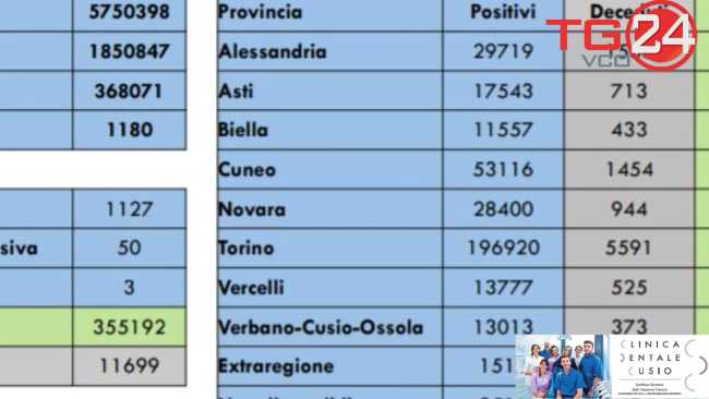 134 I NUOVI POSITIVI AL COVID-19 IN PIEMONTE
