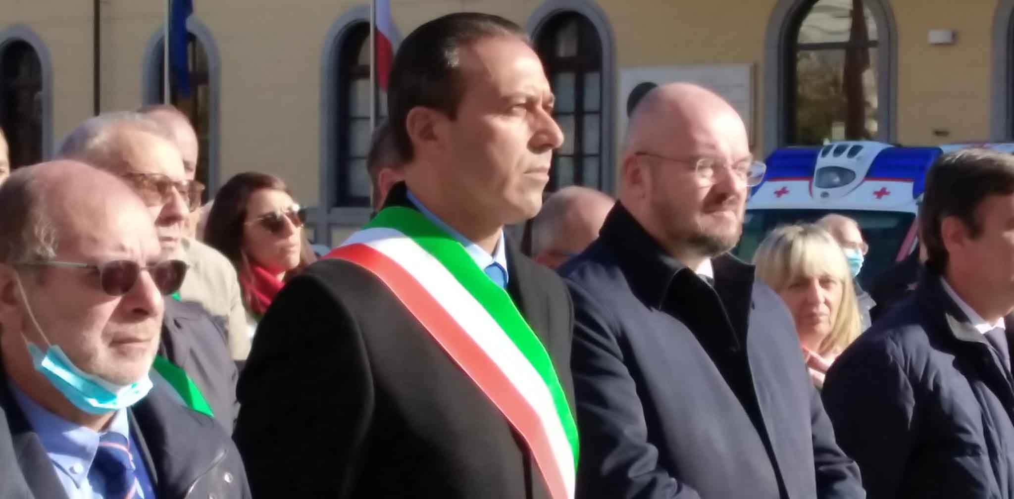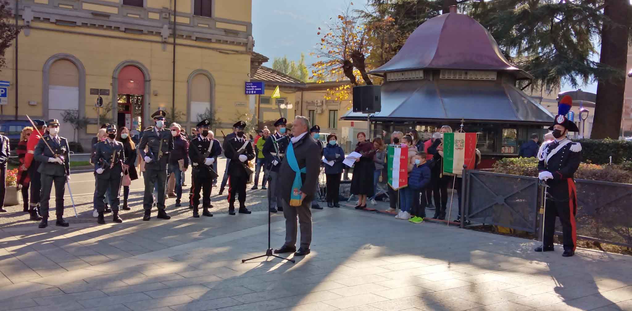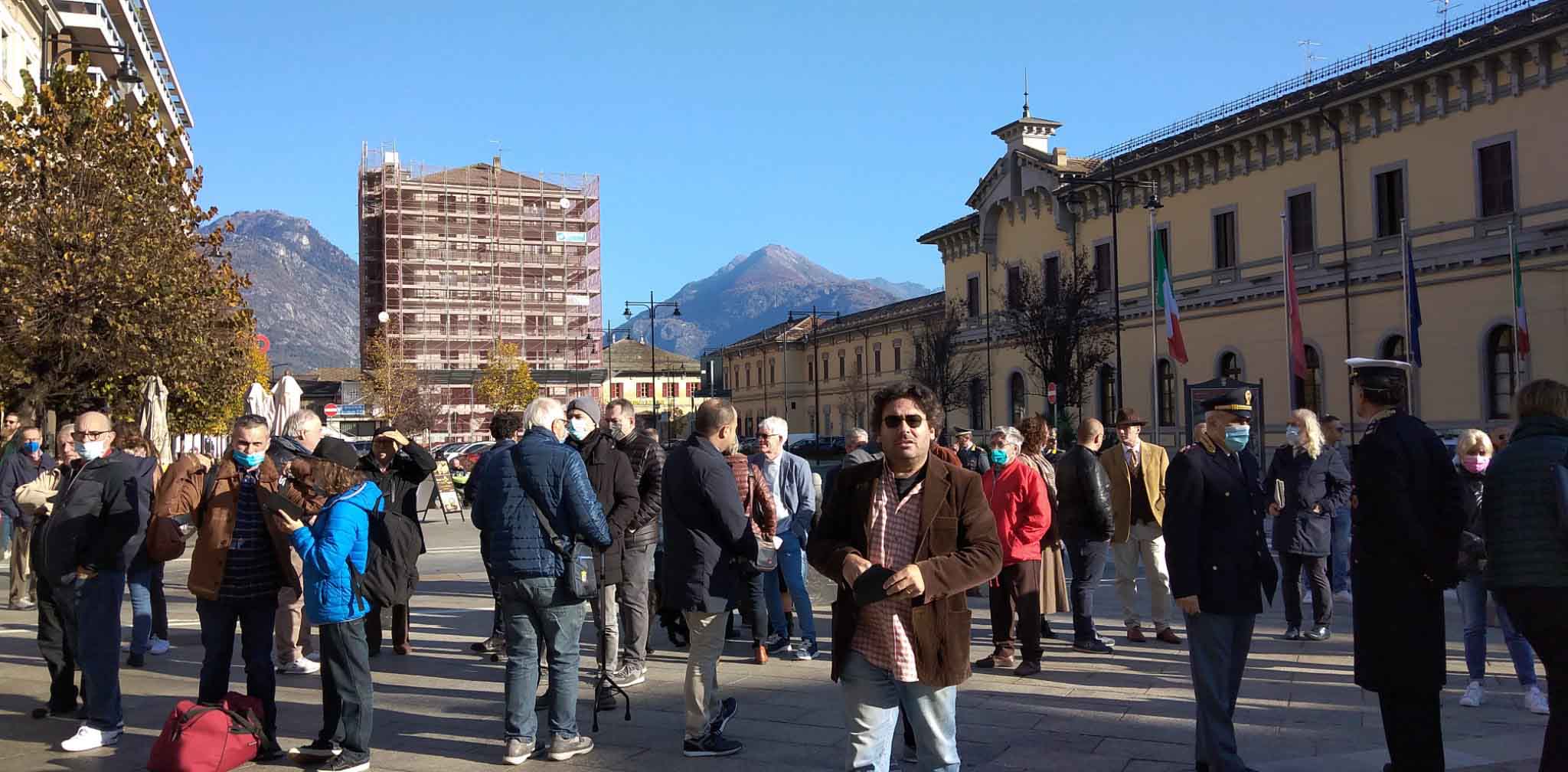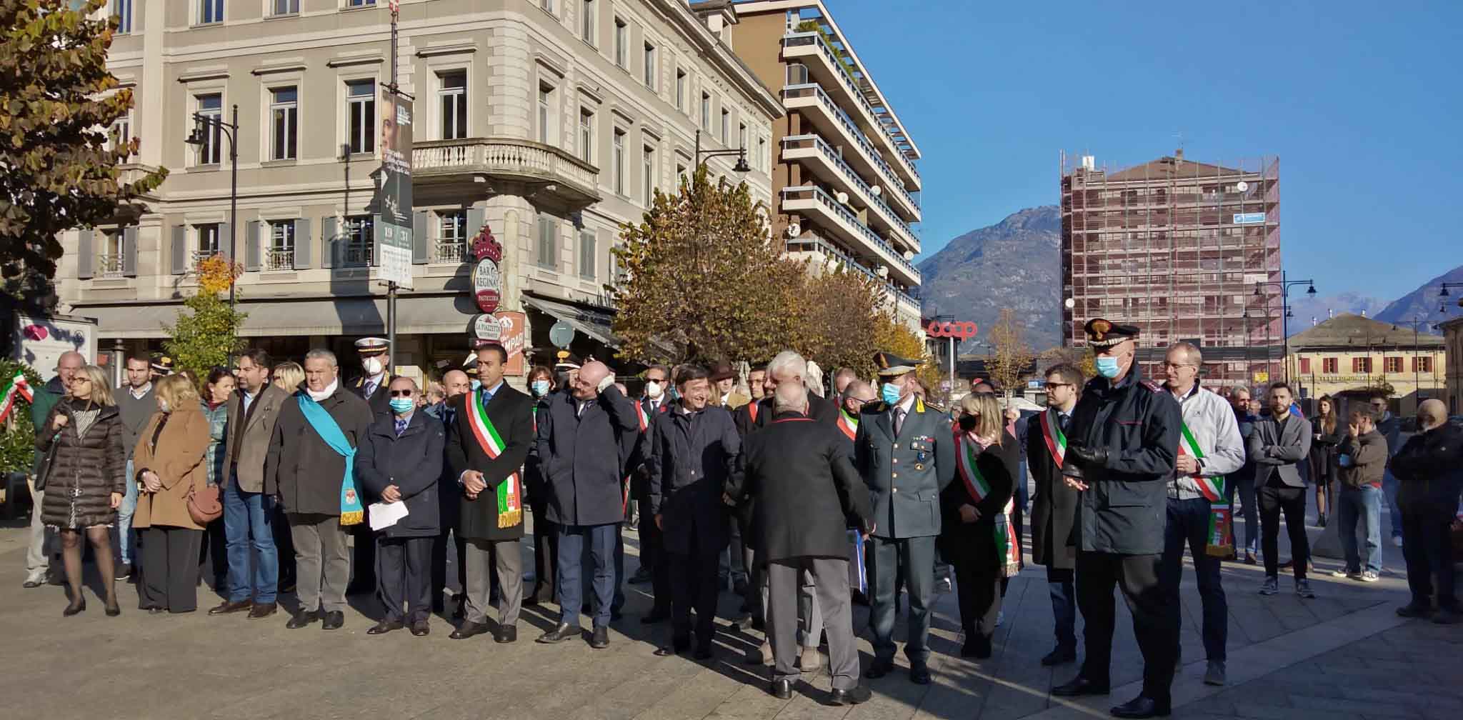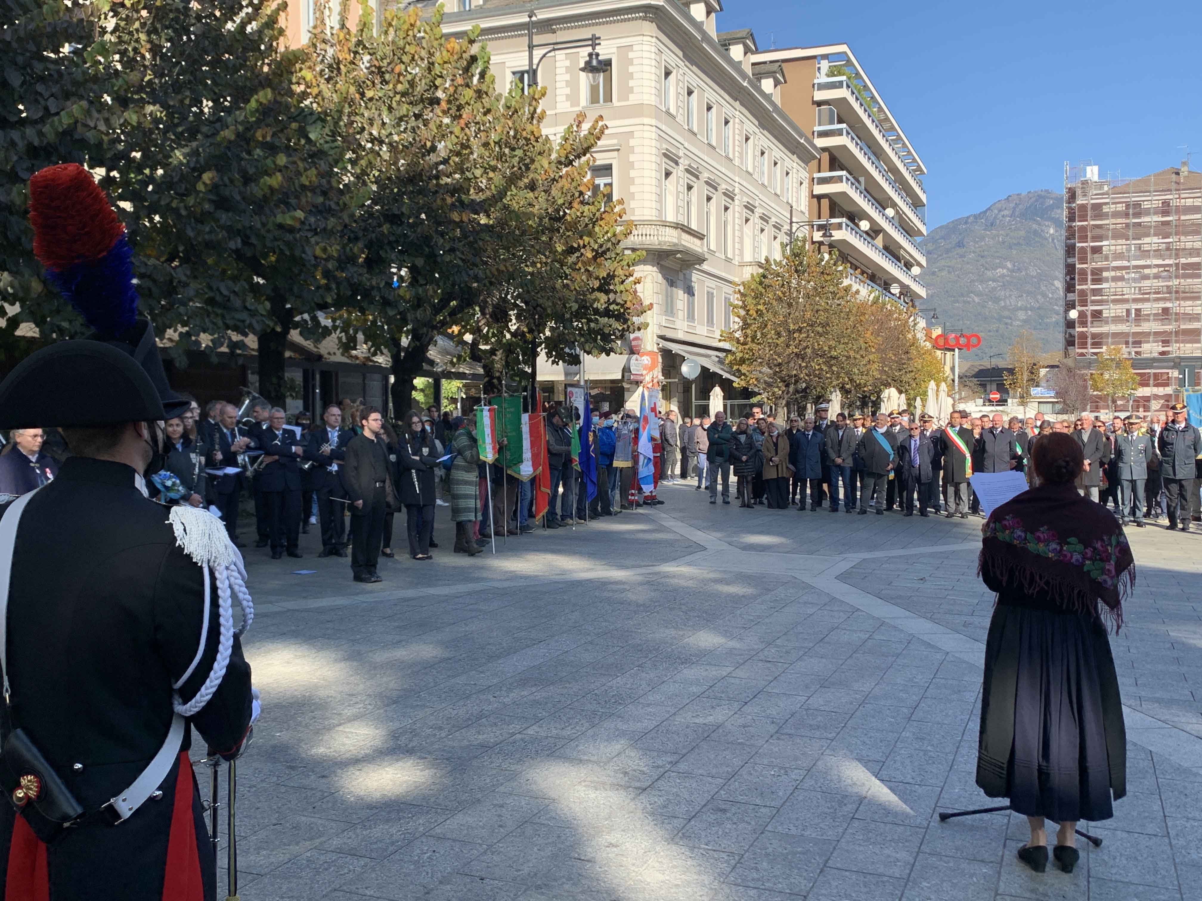 DOMODOSSOLA- 24-110-2021-- Cerimonia di celebrazione del 77° anniversario della Repubblica partigiana dell’Ossola presso il monumento alla Resistenza di piazza Matteotti con il ricevimento e gli onori al gonfalone della città, decorata con medaglia d’oro al valor militare. Dopo l’alzabandiera la deposizione della corona d’alloro