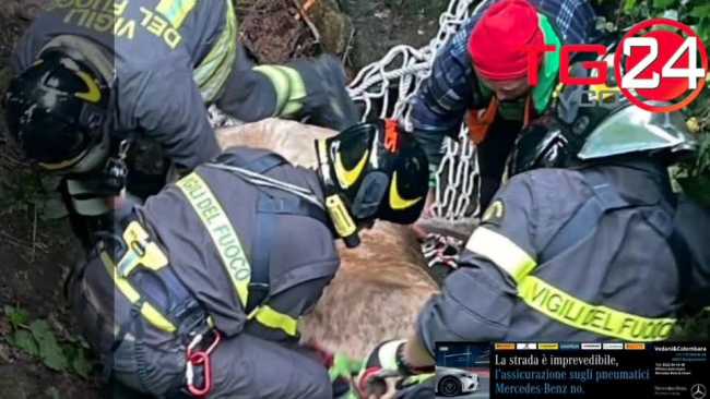 VACCA IN UNA SCARPATA SALVATA CON LA GRU