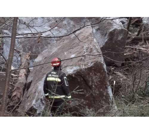 La frana è guardata a vista da volontari degli Aib, con il calare del buio entrerà in funzione un faro della protezione civile.