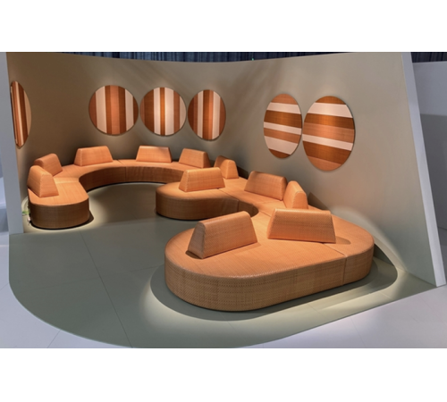 “A vida è a arte do encontro” è il titolo di questa installazione e presenta un sistema continuo di sedute tra oggetto di design e progetto di architettura. Un'opportunità per esaltare la bellezza degli intrecci in cuoio realizzati dalla Manifattura di Domodossola, attraverso l'abile maestria applicativa di Nalesso. Le forme sinuose del grande divano creano spazi relazionali, adatti a contesti come hall di hotel, lounge di aeroporti e luoghi urbani di sosta temporanea, pensati come possibilità di incontri. L’ambientazione viene completata da sei tondi rivestiti con intrecci policromi in cuoio, a sottolineare che il confine tra arte e industria non segue mai una traiettoria lineare.