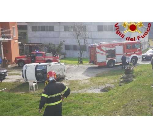 VARZO 2-4-2024 -- Incidente stradale questa mattina nel comune di Varzo in via Domodossola. I vigili del fuoco sono intervenuti con una squadra dal distaccamento di Domodossola per lo scontro tra due autovetture. A seguito dell'impatto una delle due auto si è ribaltata finendo fuori dalla sede stradale in un'area di pertinenza di un'abitazione. Feriti lievi.Una persona è stata è stata trasportata in ospedale per accertamenti da personale sanitario. Sul posto anche i carabinieri per i rilievi.