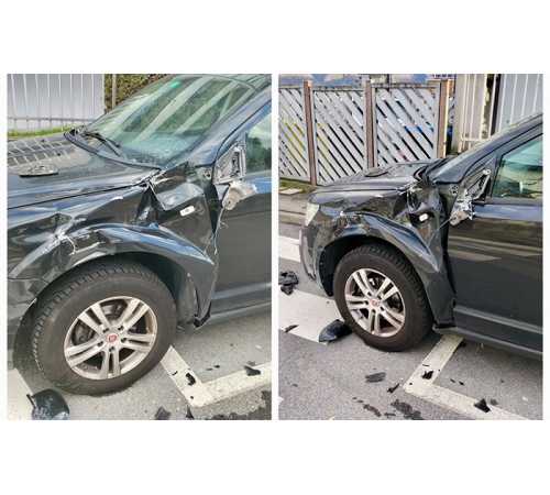 DOMODOSSOLA- 07-04-2024-- Si sveglia e trova l'auto fracassata da un camion. Che è scappato. L'episodio è avvenuto in settimana a Domodossola, in via Isonzo all'angolo con via Cavlieri di Vittorio Veneto.