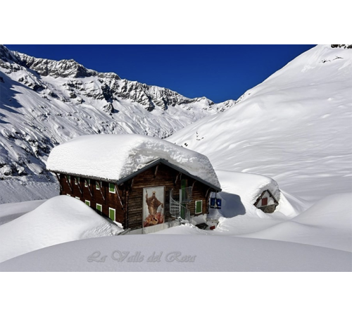 Il percorso di accesso, percorribile con ciaspole o attrezzatura da sci alpinismo, si snoda ai piedi della splendida parete est del Monte Rosa.