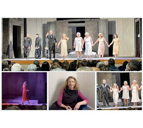VILLADOSSOLA -21-04-2024-- Chiamati in scena più volte, Amanda Sandrelli e la sua compagnia teatrale, hanno riscosso un grande successo sabato sera alla Fabbrica con un classico, “Lisistrata” di Aristofane.
