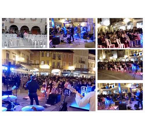 DOMODOSSOLA- 05-05-2024-- Pienone in piazza Mercato per il primo evento organizzato su iniziativa di Tanza in collaborazione con la Pro Loco ed i bar della piazza. Tantissimi hanno apprezzato la musica dal vivo della Decaband in omaggio agli 883.