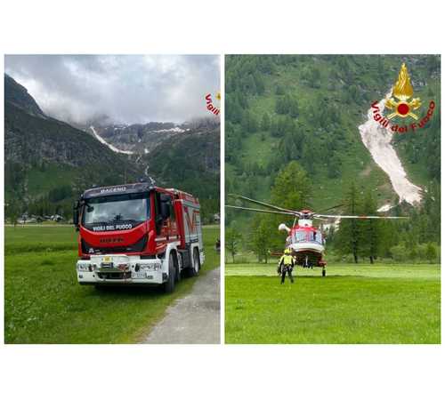 DEVERO- 16-06-2024-- Intervento dei vigili del fuoco del distaccamento volontario di Baceno questo pomeriggio poco prima delle 15 per soccorrere due escursionisti e il loro cane nella zona dell'Alpe Devero in Val Formazza, sul Pizzo Stange.