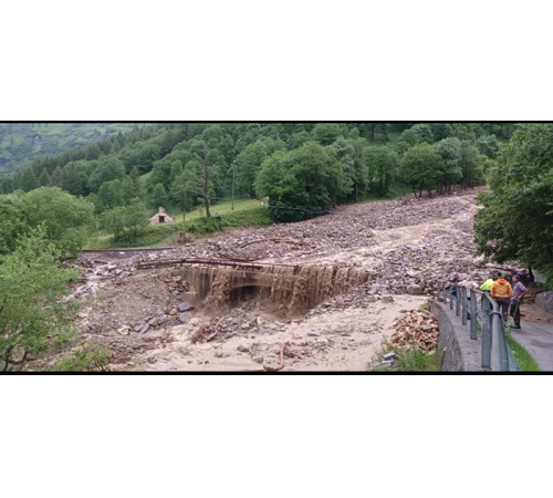 Un nubifragio ha investito la val Divedro a partire dalle ore 17, la strada per Ponte Campo, a San Domenico, è stata oggetto di una frana nel tratto dove c'è il ponte sul rio Croso, area che era già stata interessata da un grosso smottamento pochi anni fa.