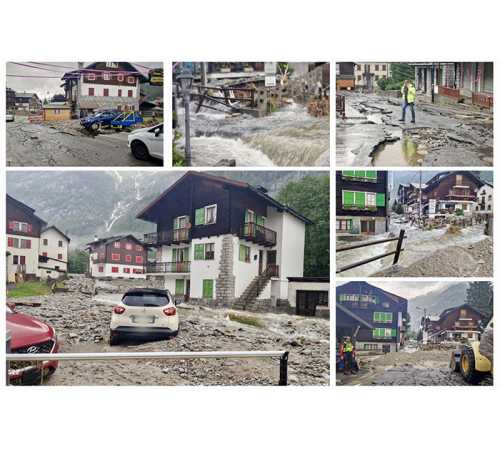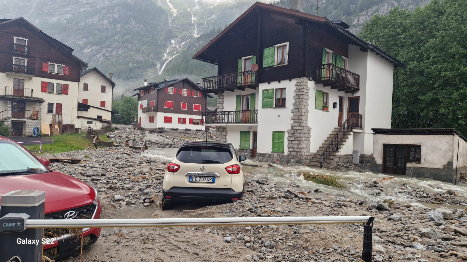 MACUGNAGA- 30-06-2024-- Sono impressionanti le immagini che giungono dal centro di mcugnaga, dove è esondato il rio Tambach riversando detriti e fango ovunque.