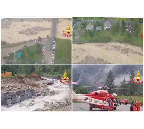 MACUGNAGA- 30-06-2024-- Ecco le immagini inviateci dalla Direzione regionale dei Vigili del fuoco della Lombardia girate a bordo dell'elicottero Drago 141 sopra le aree devastate dal maltempo in alta valle Anzasca.