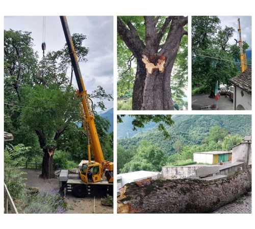 PIEDIMULERA - 3-7-2024 -- Il patriarca verde di Cimamulera, il grosso ippocastano che da poco meno di 200 anni fa bella mostra di sé accanto alla chiesa di Sant'Antonio, è malato e rischia di essere abbattuto. Nulla è ancora deciso ma il maltempo dell'altra notte, che ne ha fatto cadere una branca, ha portato all'evidenza uno stato di precarietà. "Sia ben chiaro faremo di tutto per salvarlo - assicura il sindaco Alessandro Lana- Ma se non fosse possibile far nulla, dovremo provvedere diversamente per la sicurezza di tutti. Parliamo di una zona dove c'è viabilità, vicino alla chiesa e al cimitero. Aspettiamo una relazione dell'agronomo, poi decideremo. Vorremo salvarlo ed essere più contanti tutti - conclude - ma non sono troppo ottimista". Intanto, dopo la caduta del grosso ramo, nella notte tra sabato e domenica, l'amministrazione ha richiesto una perizia di urgenza ad un tecnico, che ha rilevato come un'altra grossa parte dell'albero fosse pericolante, per la precisone una branca che sporgeva sopra al cimitero. Trattandosi di un albero monumentale, inserito nell'elenco degli alberi monumentali del Piemonte, sono stati avvisati Regione e Soprintendenza per un intervento di somma urgenza. Nella mattinata odierna (mercoledì) la branca è stata tagliata e la zona è stata riaperta al passaggio.