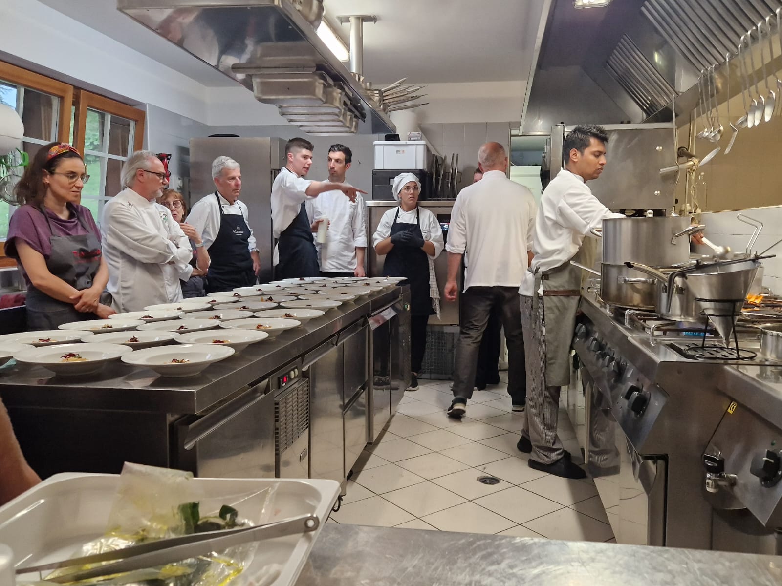FORMAZZA - 6-7-2024 -- Doveva essere un picnic "d'autore" nei prati ella Val Formazza; a causa del maltempo è stato un pranzo, ben riuscito, nelle sale dell'albergo Atlas Dorf. È qui che s'è tenuta la nuova edizione di But Gourmet, la manifestazione enogastronomica, che al piacere dell'alta cucina interpretata da grandi chef, unisce il gusto per la beneficenza.