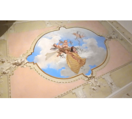 CREVOLADOSSOLA - 23-7-2024 -- Scene idilliache, con amorini e muse nell'azzurro di un cielo con poche nuvole, incorniciate da minuziose decorazioni stilizzate tra maschere e fiori. In occasione della serata musicale di Ossola Guitar Festival, il Comune di Crevoladossola ha svelato al pubblico gli affreschi del primo piano della storica Villa Cesconi Renzi. L'edificio ottocentesco, fu commissionato intorno alla metà del XIX secolo da Davide Cesconi su un modello di una villa parigina. Emigrato in Francia, dove fece fortuna, Cesconi volle farsi costruire a Preglia la testimonianza della sua rivincita sulla povertà. Dopo vari cambi di proprietà la villa nel dopoguerra fu di Pasquale Renzi. Fu l'ultimo proprietario, dopo arriveranno gli anni dell'abbandono. Ed oggi del recupero.