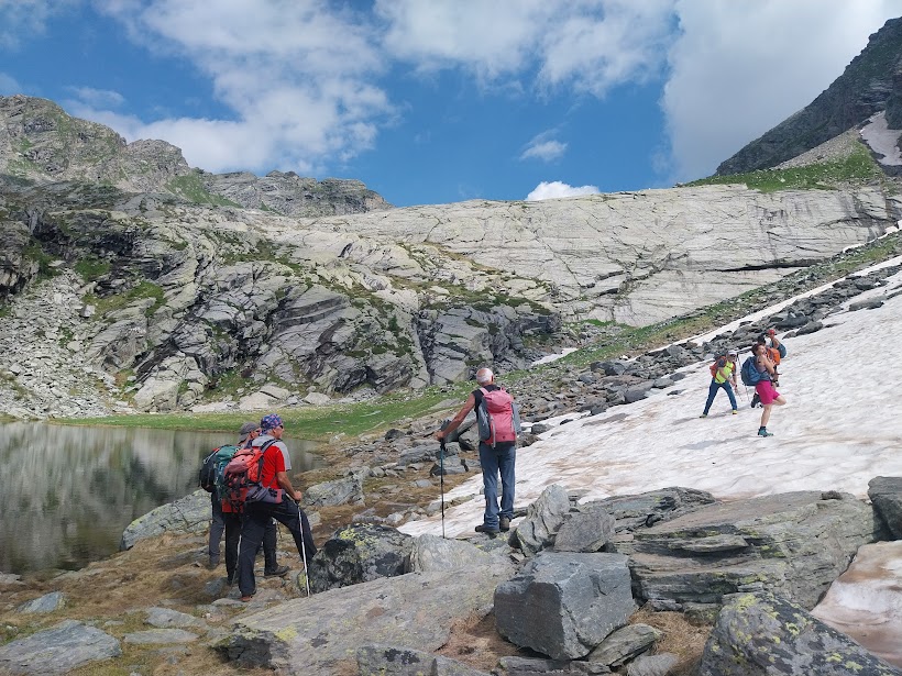 BOGNANCO - 4-8-2024 -- Dopo qualche anno torniamo d’estate nella splendida conca dei tre laghi di Paione. Questa è un’area privilegiata anche per tranquille gite sci alpinistiche. In una bella e calda giornata di luglio ci godiamo l’arietta fresca dei duemila e troviamo condizioni quasi invernali sopra il secondo lago.