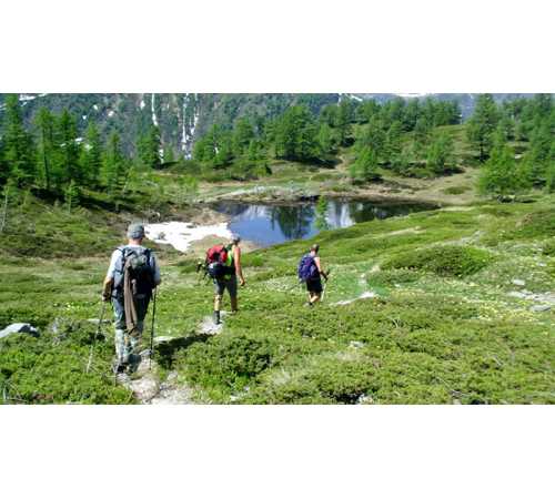 E' ancora in corso la splendida fioritura che, da sola, convalida le quasi sei ore di cammino odierne. Questi fiori sono belli soltanto in questi prati e nelle nostre fotografie. Raccoglierli per vederli sfioriti dopo poche ore è un delitto. Qui l'hanno capito. E chi non l’ha capito viene giustamente “stangato” in modo da non ripetere mai più l’errore. Da Furggu puntiamo a est, verso la Zwischbergental, fino a raggiungere in breve un'area attrezzata, con fontana, tavolo e panche. Dopo pranzo i cinque meno in forma, dei quali faccio parte dopo quasi due mesi di inattività, ritornano a Gabi e recuperano le auto. I sei inossidabili scendono verso la Zwischbergental, sempre su bel sentiero, giungendo in meno di un’ora al bacino di Sera, 1278.