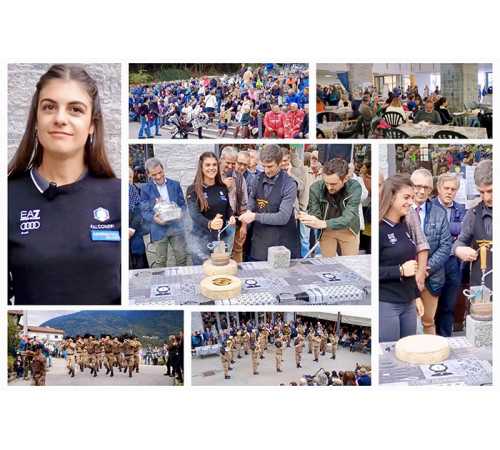 CRODO- 06-10-2024-- La coinvolgente esibizione della Fanfara Bersaglieri della Val d'Ossola domenica pomeriggio al Foro Boario di Crodo ha preceduto l'attesa marchiatura delle forme di Bettelmatt, evento che ha avuto come testimonial speciale Alessia Crippa, ventiquattrenne, originaria di Crodo, campionessa di skeleton, tornata a casa dagli allenamenti in vista della stagione agonistica proprio per “marchiare” alcune forme del formaggio che ha portato il nome della Valle Antigorio nel mondo.