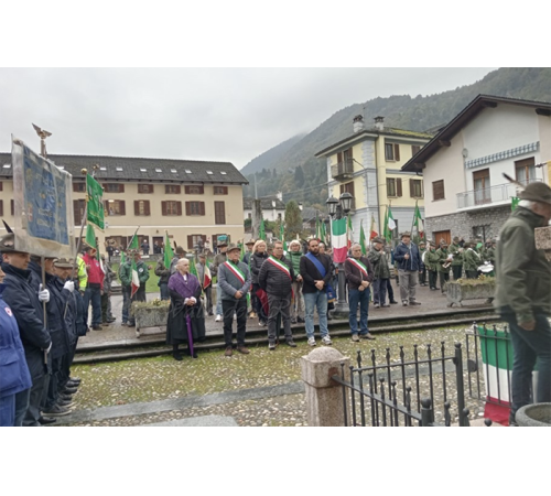 La cerimonia in piazza si è aperta con l' alzabandiera, proseguita con l' onore ai caduti e terminata con la presentazione del nuovo socio onorario del gruppo alpini, Andrea Cappelletti sempre presente alle manifestazioni, alpine e delle Milizie in Valle