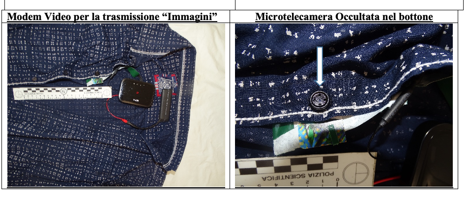 Nelle diverse perquisizioni personali e locali eseguite sono stati sequestrati 14 telefoni cellulari, 9 modem video/audio, 6 auricolari, 6 micro telecamere, 15 capi di abbigliamento già attrezzati con i dispositivi tra cui microtelecamere già installate ed occultate nei bottoni, decine di batterie per l’alimentazione dei dispositivi, 12.000 € in contanti nonché una pinzetta per l’estrazione dei micro auricolari.