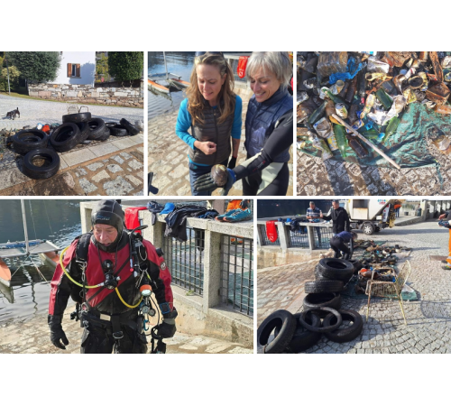 MERGOZZO - 9-11-2024 -- Reperti che potrebbero essere datati tra gli anni '70 e '80. come una vecchia bottiglia di un noto marchio di aranciata che non si usa più tempo immemore e poi una quindicina di copertoni, decine di lattine con la vecchia apertura, un paio di sedie, scarpe, boccette di plastica e tutto quello che in uno dei laghi più puliti del nord Italia non ci si aspetterebbe di trovare. L'operazione pulizia nel lago di Mergozzo è stata frutto del senso civico di un sub non nuovo a questo tipo di iniziative, Gianfranco Mazza, che, coinvolti un po' di amici e trovato un accordo con Comune e Conser VCO, questo sabato mattina ha ripulito il fondale davanti al Municipio. Lui sott'acqua, e alcuni amici che lo aiutavano prelevando quello che portava a galla. Mazza altre volte ha effettuato intervento di pulizia nel nostri laghi, e diverse volte ha provveduto a segnalare la presenza di ordigni inesplosi, a Mergozzo ma anche nel lago d'Orta, che potevano rappresentare un pericolo per la navigazione.