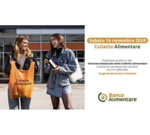 PIEMONTE -12-11-2024 -- Torna la Giornata Nazionale della Colletta Alimentare: l'appuntamento è per sabato 16 novembre. Si tratta dell’iniziativa promossa dalla Fondazione Banco Alimentare durante la quale si potranno acquistare alimenti non deperibili da donare alle persone in difficoltà. In più di 11.600 supermercati in tutta Italia, oltre 150.000 volontari di Banco Alimentare, riconoscibili dalla pettorina arancione, inviteranno ad acquistare prodotti a lunga conservazione come olio, verdure e legumi in scatola, conserve di pomodoro, tonno e carne in scatola e alimenti per l'infanzia che saranno poi distribuiti a oltre 7.600 organizzazioni partner territoriali, che sostengono oltre 1.790.000 persone.