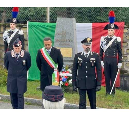 DOMODOSSOLA - 12-11-2024 -- Si è tenuta questa mattina al monumento in via Caduti di Nassiriya a Domodossola, la cerimonia di commemorazione dei Caduti nel tragico attentato terroristico che 21 anni fa, in Iraq, costò la vita a 19 italiani, tra i quali 12 carabinieri. Organizzata dalla sezione domese dell'Associazione Nazionale Carabinieri la cerimonia ha visto la partecipazione delle rappresentanze di associazioni combattentistiche, dei vertici locali dell'Arma e del sindaco Lucio Pizzi, che ha deposto un omaggio floreale al monumento collocato di fronte alla caserma sede del comando compagnia carabinieri in regione Nosere. La cerimonia si è poi spostata a Beura per la messa in suffragio officiata da don Paolo Cavagna nella chiesa di San Giorgio Martire. Previsto l'intervento di autorità civili e militari, rappresentanze di associazioni combattentistiche e d'arma.