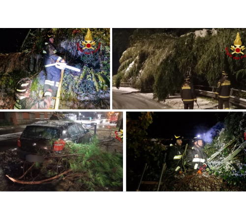 VCO - 22-11-2024 -- Ancora in corso questa mattina gli interventi dei Vigili del fuoco per la neve caduta sul territorio del Verbano Cusio Ossola. Taglio di rami e piante pericolanti, soccorso ad automobilisti in difficoltà e assistenza ad enti per cavi aerei di servizio energia o telefonia. Dalle prime ore dall'inizio dell'emergenza sono stati circa 50 gli interventi dei vigili del fuoco.