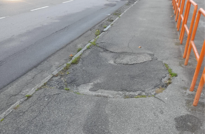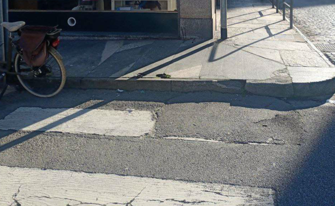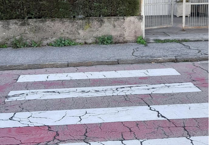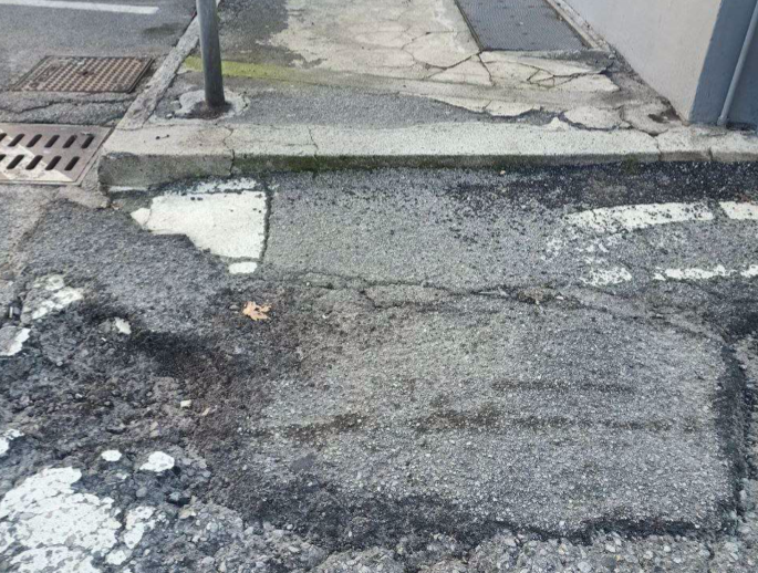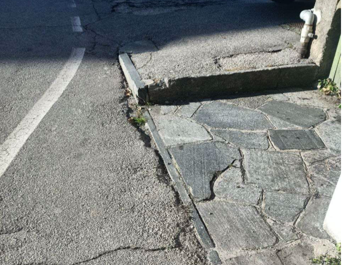 DOMODOSSOLA - 23-11-2024 -- Le condizioni in cui versano alcuni marciapiedi e attraversamenti pedonali nelle aree domesi fuori dal centro storico, rappresentano vere e proprie barriere architettoniche per le persone con mobilità ridotta.