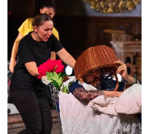 Shakespeare è l’autore più rappresentato nel repertorio di compagniadellozio e questa produzione è una delle più impegnative e fortunate. John Falstaff, cavaliere scalcinato a caccia di quattrini, per procurarsi un po’ di denaro decide di corteggiare due donne sposate: Madama Page e Madama Ford. Le due però scoprono i piani del rozzo aspirante amante e decidono di prendersene gioco, e di prenderecontemporaneamente in giro il signor Ford, marito geloso. Nasce così una delle più fortunate commedie di Shakespeare che in un gioco di equivoci mette a nudo non solo l’inadeguatezza di Falstaff, ma anche i difetti di tutti gli altri personaggi della vicenda.