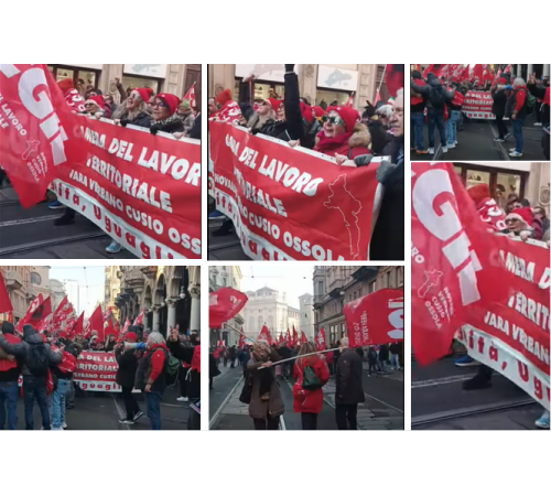 TORINO - 29-11-2024 -- A Torino è in corso la manifestazione di Cgil e Uil proclamata in occasione dello sciopero generale contro la politica economica del Governo. Ad una prima stima degli stessi sindacati sarebbe altissima l'adesione del manifatturiero (Lagostina 80%), alta nell'edilizia, manca ancora il dato del terziario mentre dal settore pubblico si parla di segnali incoraggianti a Novara ad esempio, è al 100% l'adesione al centro prelievi dell'ospedale. Come partecipazione alla manifestazione fonti sindacali parlano di 20mila presenze, oltre 600 da VCO e Novarese. I deti definiti nelle prossime ore.