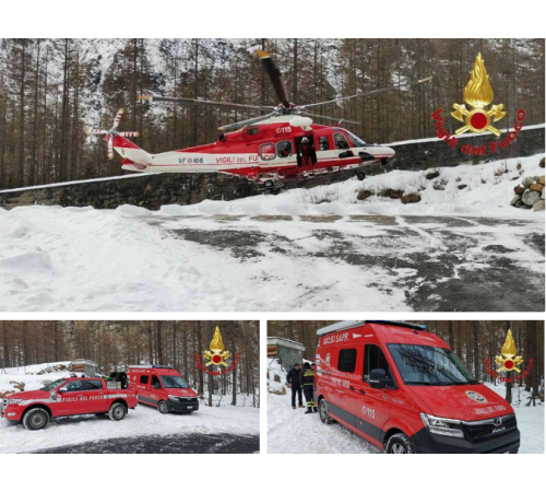 Sono impegnati sul campo la squadra del Locale Distaccamento dei vigili del fuoco, il Nucleo SAPR (droni) di Torino, il Nucleo Elicotteri di Malpensa.