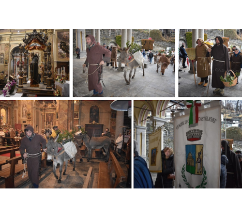 Nuvole basse e leggera pioggia nella giornata in cui ricorre la festa in onore di Sant'Antonio abate, patrono del paese, di cui si perde la memoria nel tempo ma che, secondo la testimonianza del parroco don Andrea Primatesta, risale almeno ad oltre un secolo fa. La comunità: uomini, ragazzi e bambini, vestiti con i sai dei frati, portano le gerle, i canestri, ed anche vari asinelli nella chiesa intitolata al Santo.