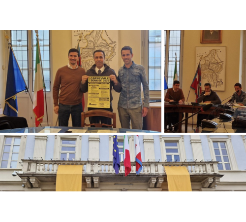 DOMODOSSOLA - 11-2-202 - I drappi gialli del Carnevale domese decorano la facciata di Palazzo di Città dove questa mattina si è tenuta la presentazione del ricco programma organizzato dal Comitato Pulenta e Sciriuii e dal Comune di Domodossola. Si festeggia il 154° anno del carnevale domese e il 55° del comitato. «Un momento di gioia e di spensieratezza necessario in questo periodo» ha detto il sindaco Lucio Pizzi ringraziando l’impegno del comitato. Un centinaio i volontari senza i quali non si potrebbe realizzare la manifestazione. «La novità di quest’anno riguarda la sfilata ( il 2 marzo) che vede la partecipazione del Carnevale Vigezzino» ha detto Andrea Truscello, vice presidente del Comitato. Il presidente, Roberto Ghignone, non era presente per motivi di lavoro. L’altra novità è la celebrazione del matrimonio del Togn e della Cia in Piazza Repubblica dell’Ossola. «Ringraziamo anche i tanti sponsor» ha aggiunto Nando Poletti. Giovedì 20 febbraio esce in edicola “Ul Trusur”, il giornalino del comitato. Venerdì 21 febbraio il Togn e la Cia parteciperanno al matrimonio dell’Arlori e della Zecra alla Fabbrica a Villadossola. Sabato 22 febbraio l’apertura con la sfilata per le vie del borgo alle 16.30 e la consegna delle chiavi della città al Togn e alla Cia. Il clou domenica 2 marzo con Pulenta e sciriuii in piazza Mercato: alle 14.30 la grande sfilata, circa 15 i carri partecipanti (di cui 3 i carri di Domodossola) e 26 i gruppi. L’ altra novità è il matrimonio del Togn e della Cia in piazza Repubblica dell’Ossola. Si termina martedì 4 marzo con la partecipazione al Carnevale del Badulerio.