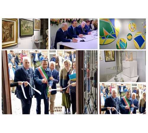 DOMODOSSOLA- 13-04-2025-- Taglio del nastro a Palazzo San Francesco per la nuova mostra, intitolata “Concrete astrazioni. Di Salvatore, Parnisari, Simionato, tra forma e invenzione”. Novanta opere tra dipinti, disegni, ceramiche e metalli degli artisti Di Salvatore, Parnisari e Simionato sono in esposizione fino al 13 luglio 2025.