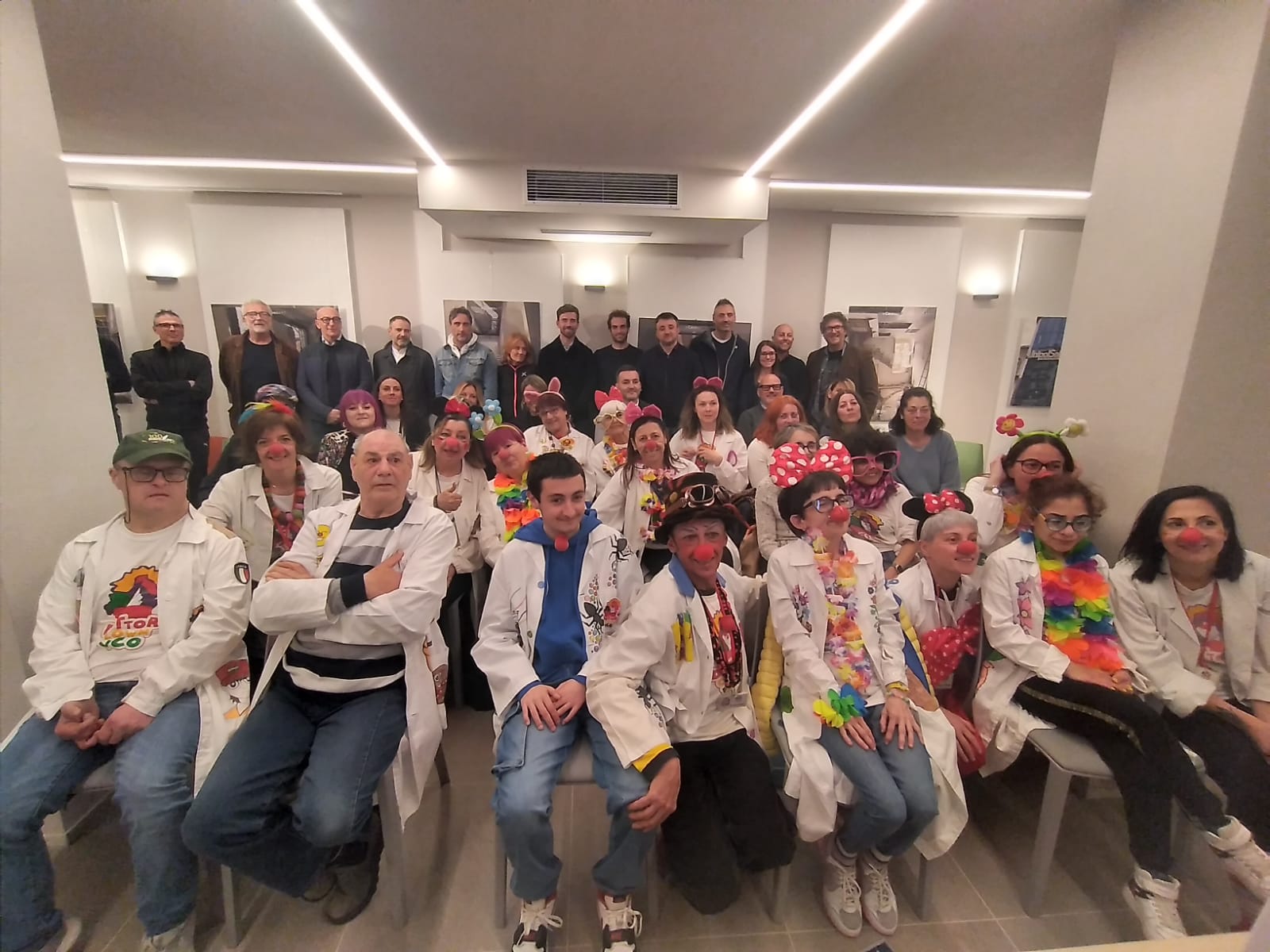 DOMODOSSOLA - 16-4-2025 -- È stato un anno straordinario per il progetto “Oggi indosso il naso rosso”, promosso e gestito dall’Associazione Dottor Clown VCO ODV e realizzato grazie al sostegno della campagna Sporcatevi le Mani di I Bambini delle Fate Impresa Sociale SPA, e al contributo di oltre 30 imprenditori del VCO. L'iniziativa ha consentito l’inserimento come volontari Dottor Clown di ragazzi con autismo e altre disabilità, coinvolgendoli in un percorso strutturato e formativo fuori dal loro contesto abituale. Ieri sera la sala polifunzionale Caveau di Domocentro ha ospitato i ragazzi di Dottor Clown VCO, le loro famiglie e gli imprenditori. Andrea Bracali, in arte “dottor Bracco”, presidente dell'Associazione Dottor Clown VCO ODV, spiega: «Durante questo primo anno sono stati coinvolti 9 ragazzi, provenienti sia da contesti familiari sia da strutture residenziali. Ognuno di loro ha ricevuto un camice colorato realizzato dall’artista Manuela Zucco, uno zaino personalizzato, la divisa ufficiale da clown e, soprattutto, ha scelto il proprio nome da Clown». Ecco i protagonisti: Dott. Pepè, oggi “Primario”, firma le dimissioni con la famosa “Z” del Dott. Zac, il “vice primario” podista di corsia. Dott. Walterissimo, con il suo sorriso contagioso e il mitico caffettino di fine turno. Dott. Artù, già leader tra Alpini, Protezione Civile e Vigili del Fuoco, oggi anche Dottor Clown. Dott.ssa Ciliegia, dolce e delicata, essenza degli obiettivi del progetto. Dott.ssa Georgie, grintosa e solare, capace di trasmettere pura felicità. Dott.ssa Heidi, una forza della natura, presente fin dall’inizio con risultati straordinari. Dott. Cips, uno tsunami di energia positiva… a idrogeno! Dott. Formica, mascotte fin dagli 8 anni, oggi finalmente realizza il suo sogno. «Con il prezioso aiuto degli imprenditori che hanno creduto in questo progetto – prosegue Bracali – non solo si garantisce la continuità dell’iniziativa, ma è stato possibile anche donare oltre 15.000 euro a favore di servizi residenziali e semi-residenziali per persone con disabilità. Tra le principali donazioni: 34 articoli per la palestra del Centro DO di Omegna; ausili per la Terapia Basale al Centro Anch’io di Verbania; 1 sollevatore per Sacra Famiglia; ausili per la RAF del CISS Ossola di Domodossola; 1passeggino speciale per la piccola Matilde. Obiettivo per il 2025? Raddoppiare!». La serata di ieri è stata un’occasione speciale per ringraziare ufficialmente gli imprenditori che hanno reso tutto ciò possibile e rilanciare verso traguardi ancora più ambiziosi per il prossimo anno.