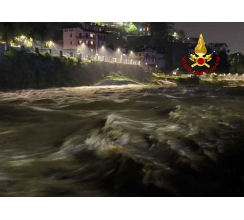 VCO - 17-4-2025 -- Fiumi sorvegliati speciali. A Villadossola desta preoccupazione il torrente Ovesca (foto) che ha superato all voglia di pericolo mentre il Toce è sopra il livello di guardia sia a Domodossola sia a Mergozzo (Candoglia) dove alle 9 era a 7.29 metri (la soglia di pericolo è a 8 metri). Preoccupazione in Bassa Ossola dove le passate alluvioni (vedi 2020) hanno lasciato tracce ancora ben presenti. Da Vogogna, a Ornavasso, ad Anzola, a Mergozzo, i Centri operativi comunali sono aperti da 24 ore. Smottamento nel fiume Riale al Gabbio, esondato. Esondato anche il Tocetta.