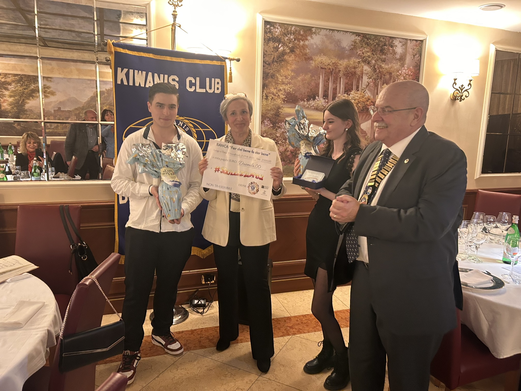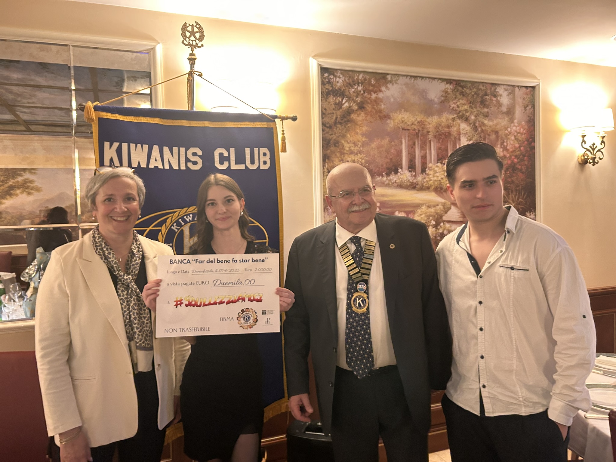 In occasione della conviviale di giovedi 17 aprile, tenutasi come sempre all'Albergo Ristorante Corona di Domodossola, il Club Kiwanis domese ha ospitato i professori Paola Ferraris e Claudio Galizia e gli studenti Maia Giani e Kevin Mucaj del Liceo Scientifico Spezia di Domodossola che, al termine della cena hanno illustrato le loro esperienze nell'ambito del Progetto "Sbullizziamoci" con un entusiasmo e un'umanità molto toccante che, in alcuni momenti, ha commosso tutti i presenti.